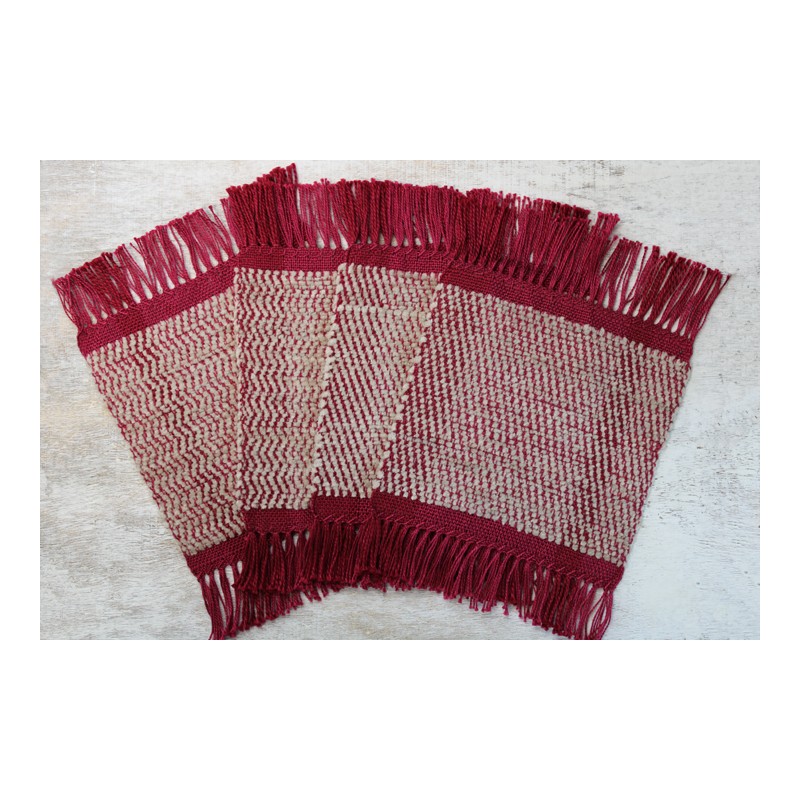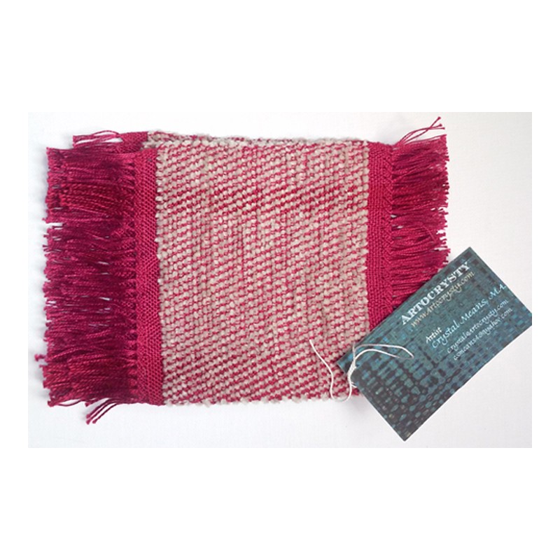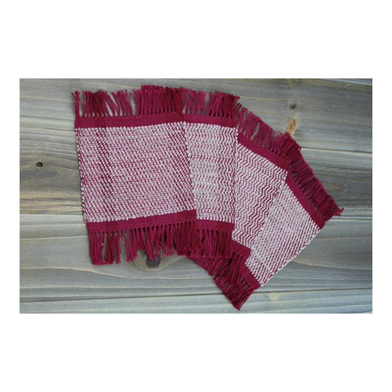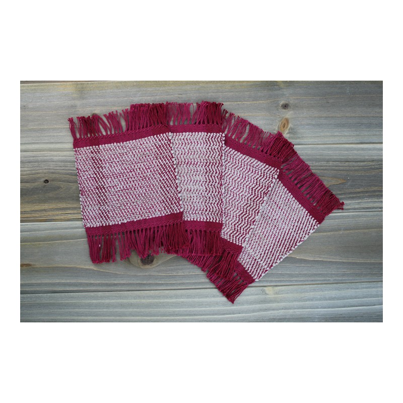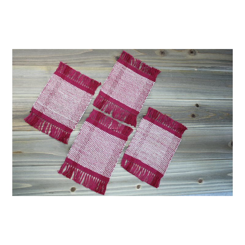 This beige and berry set of mug rugs is just the perfect way to protect your table in style. The beige chenille thread is soft and protects the table from rings and heat from your coffee or tea. These 4 mug rugs were hand woven on a floor loom in my studio. Your purchase will include this exact set of 4 hand woven mug rug coasters.