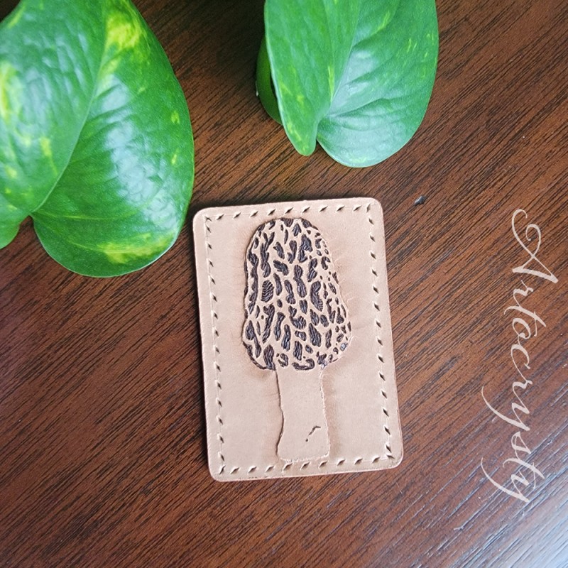 These patches are perfect stocking stuffers for the forager, scout and lovers of the outdoors. This morel patch design is pyrographed by hand, hand-tooled, hand-stained, and a clear coated giving each patch its own unique character. This patch is cut from high quality vegetable tanned leather. Holes are punched for easy stitching onto anything you desire, whether it be a hat, jean jacket, coat, or backpack.