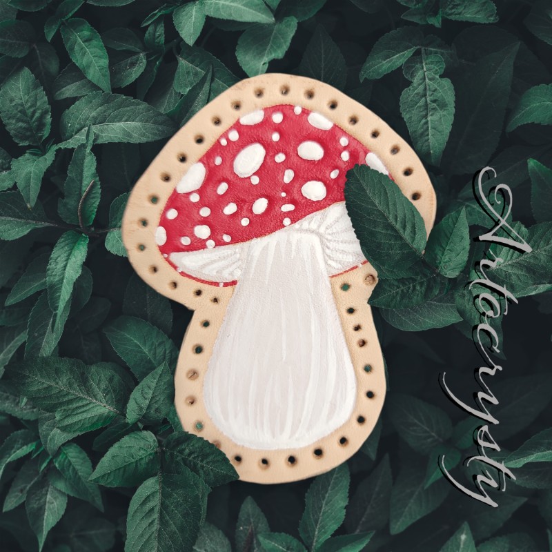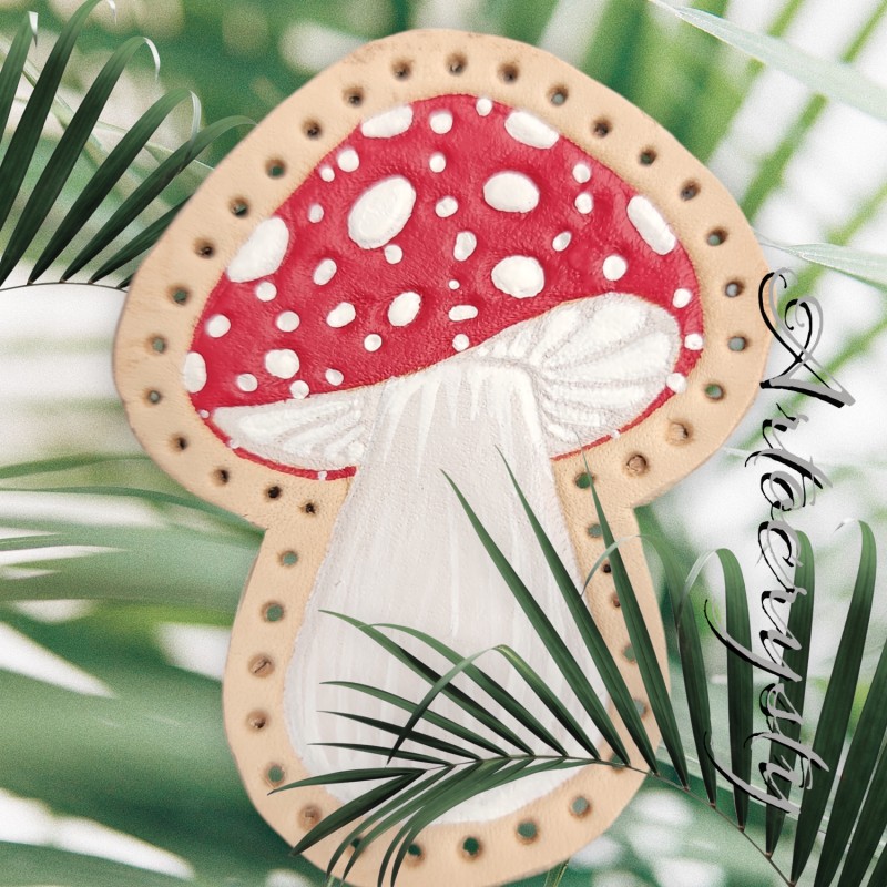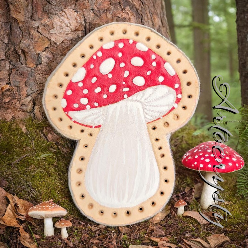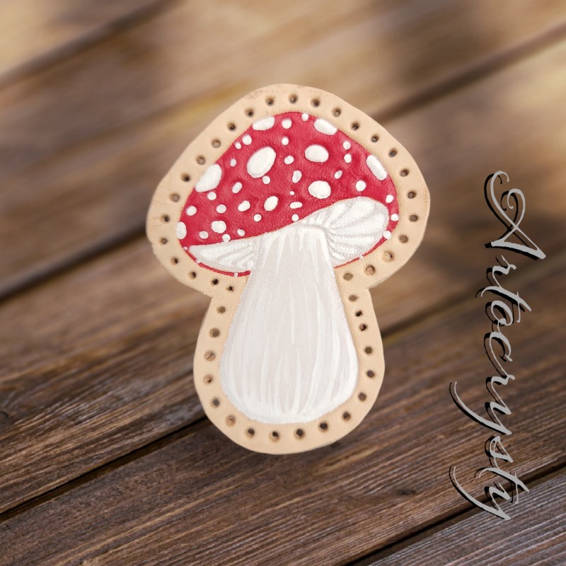 Red Amanita Mushroom Leather Patch.